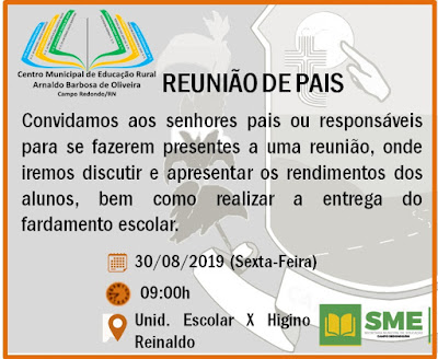 REUNIÃO DE PAIS DA ESCOLA HIGINO REINALDO DO CENTRO RURAL ARNALDO DE OLIVEIRA - SME